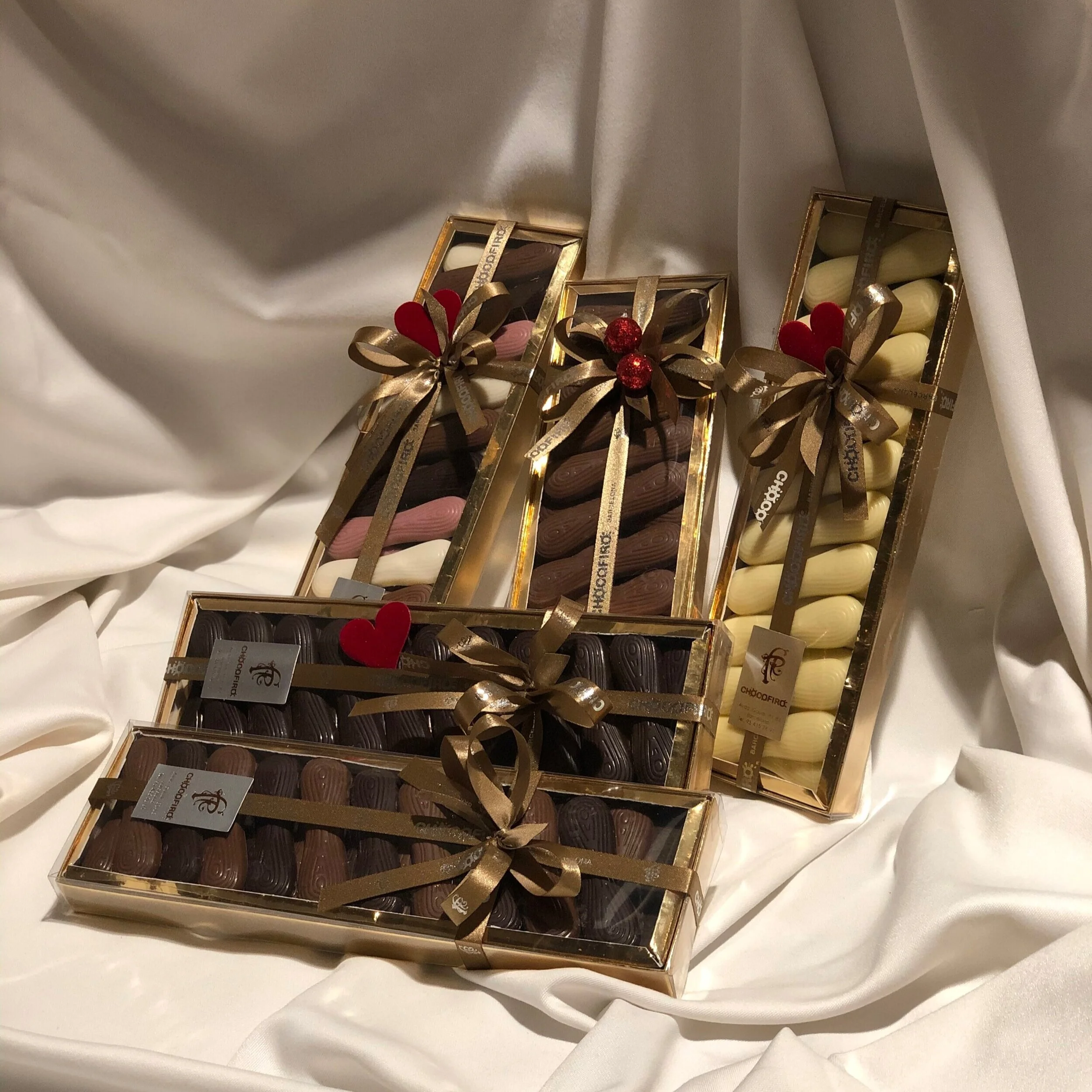 Una selección de bombones que les permitirá disfrutar del auténtico sabor del chocolate con las combinaciones más sorprendentes y exquisitas. En chocoFIRO les permitimoselegir entre 4 tamaños de caja: de 9, 16, 25 y 36 bombones.